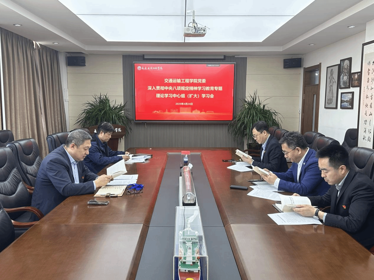 为深入学习贯彻习近平总书记关于加强党的作风建设的重要论述和中央八项规定精神,充分发挥领导班子带头学、深入学的示范带动作用,交通运输工程学院党委于4月24日召开理论学习中心组(扩大)学习会议暨深入贯彻中央八项规定精神学习教育读书班,学院党委理论学习中心组成员、班子成员参加学习会议。学院党委书记、副院长张罕育主持学习会议。