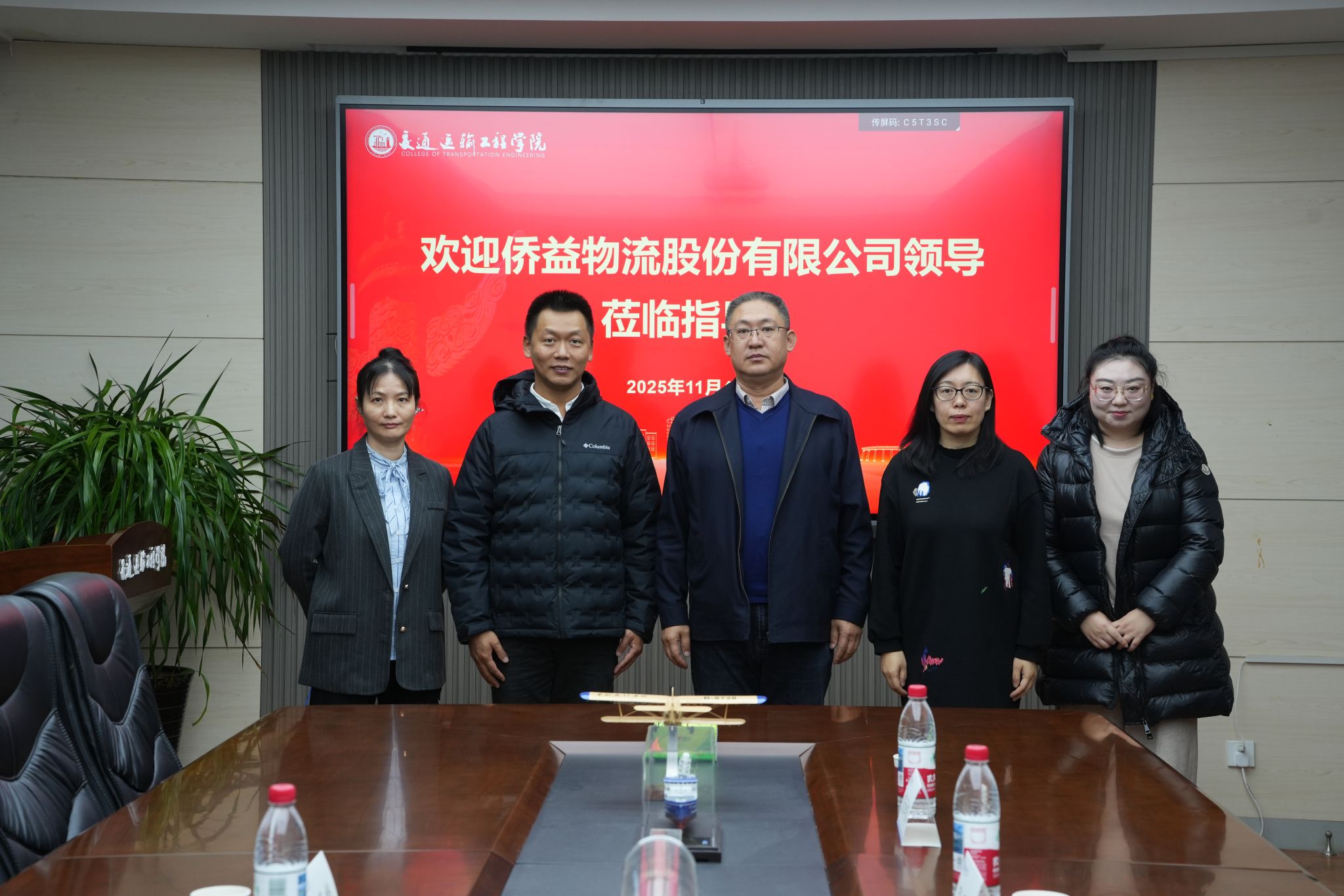 11月4日,侨益物流股份有限公司人力行政总监陈子麟、副总监林建华到访我校交通运输工程学院,与交通运输工程学院党委书记张罕育、党委副书记兼副院长商非、学生工作办公室主任彭译侬开展座谈交流。