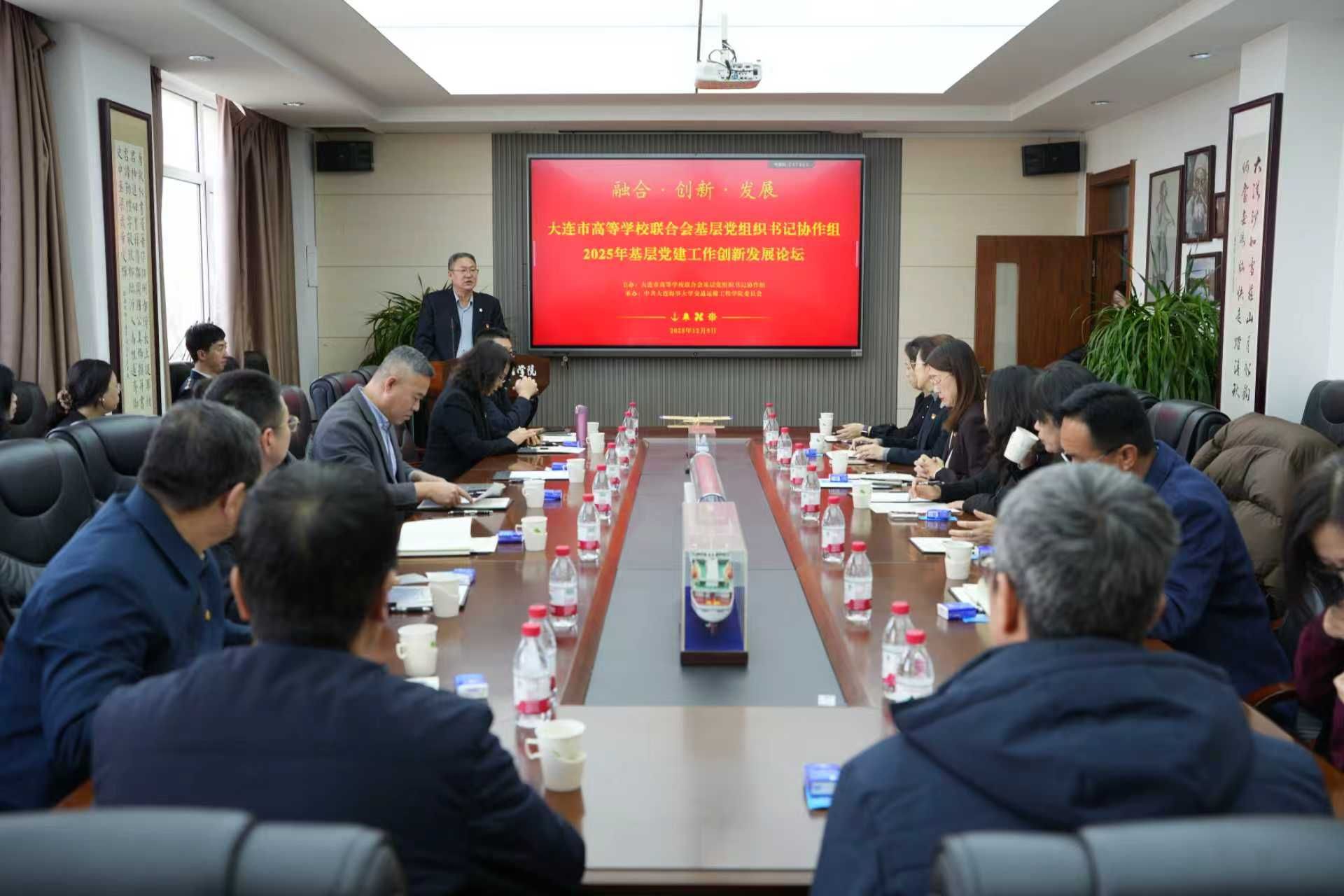12月5日,由大连市高等学校联合会基层党组织书记协作组主办、中共大连海事大学交通运输工程学院委员会承办的2025年基层党建工作创新发展论坛在大连海事大学举办。本次论坛以“融合・创新・发展——党建引领高等教育高质量发展”为主题,大连海事大学党委组织部部长沈晓波、大连市高等学校联合会秘书长吴颖应邀出席,来自大连市各高校的30余名基层党组织工作人员参加论坛,大连市高等学校联合会基层党组织书记协作组组长、大连海事大学交通运输工程学院党委书记张罕育主持论坛。