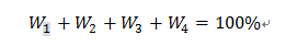 思想品德、学业成绩、科技创新和发展素质四项测评指标权重系数加和应为100%,即: